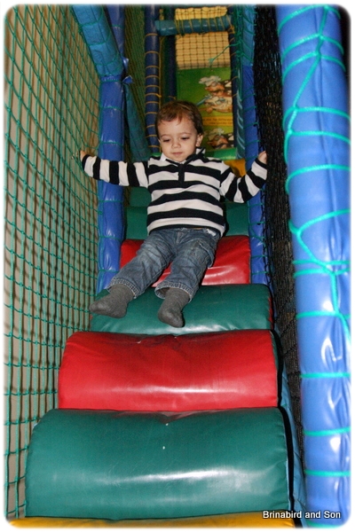We had to check out the soft play. Even though only the lower level was technically according to the guidelines "age appropriate" for him it did not stop him so neither did I. Even I found the slide at the top a bit fast and daunting but it did not stop him as he said "bye bye mummy" and literally flung himself down it!